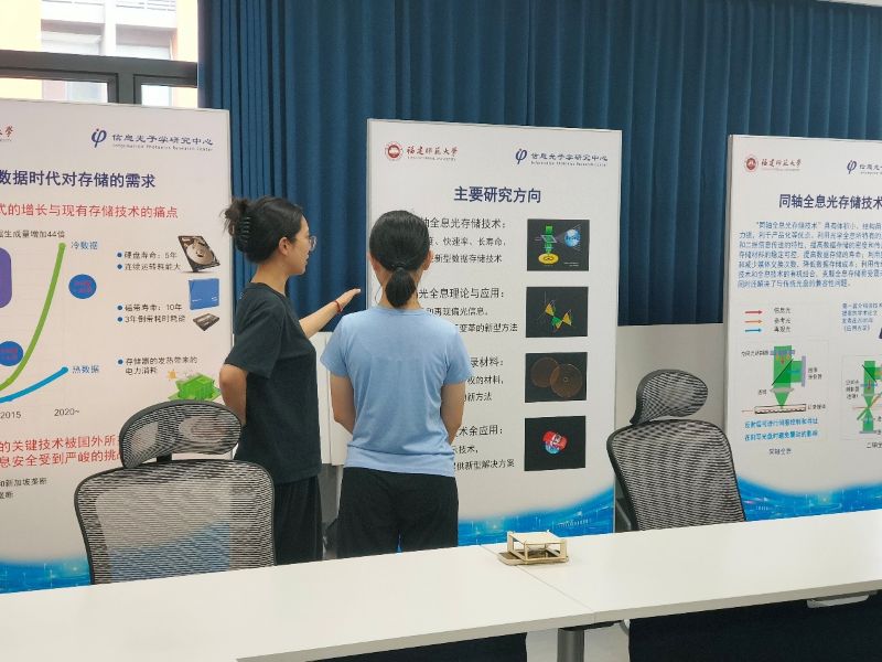 信息光子学研究中心也参与本次开放日活动,在科研楼18号楼808教室内简要展示了中心的研究方向、研究目标、研究成绩,我们向到场的家长与青少年同学介绍全息光存储以及激光相关的科普类知识,最后将全息光子学的科学理念与研究精神传递给到访的家长以及青少年同学。