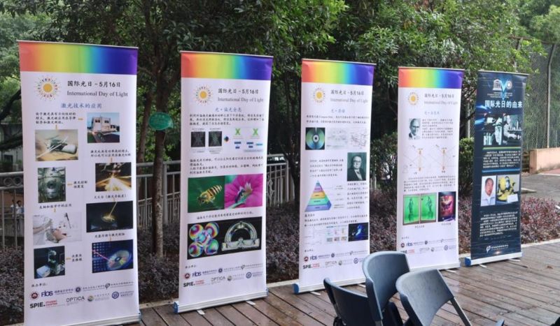 5月23日下午,为深入学习贯彻习近平总书记关于科技创新的重要论述,值第八届国际光日、第二十五个全国科技活动周、以及第九个全国科技工作日期间,光电与信息工程学院信息光子学研究中心联合2024级科学与技术教育专业和光电学院研究生会前往福建师范大学附属中学联合开展主题为“光聚万象,智启新生”的“国际光日”科普活动,旨在普及光学知识,传播科学观念,推进第八届“国际光日”系列活动的开展。本次活动由福建师范大学信息光子学研究中心、福建师范大学光电与信息工程学院和福建省光学学会等联合主办,由国际光学工程学会(SPIE)福建师范大学学生分会、美国光学学会(Optica)福建师范大学学生分会、中国光学学会(COS)福建师范大学学生分会、中国光学工程学会(CSOE)福建师范大学学生分会等联合承办。 信息光子学研究中心的研究生们在附中的室外操场搭建起了光学知识科普展板,科教的研究生们向附中的学生们介绍活动内容,吸引大家参与到国际光日科普活动中来。 |