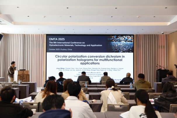 2025年11月21日至23日,国际先进光电材料、技术与应用大会(OMTA2025)在福州佩伯酒店成功举行。本次大会由中国光学工程学会主办,中国光学工程学会光电材料与器件专业委员会、福州大学、福建师范大学等单位联合承办,聚焦光电材料与器件领域的前沿进展与产业需求,设置大会主报告、10 个专题分会场、创新创业大赛及企业展示等多项活动,为全球光电领域的专家学者、企业代表及青年人才搭建了高水平的学术交流与产学研协同平台。 22日上午9:00,大会开幕式在佩伯酒店隆重举行,由福州大学副校长卢孝强教授主持,西北工业大学黄维教授与中国科学院福建物质结构研究所副所长林文雄研究员致辞。开幕式上,同步举行了中国光学工程学会光电材料与器件专业委员会成立仪式、中国光学工程学会福州创新中心揭幕仪式、中国智能光电材料与芯片创新联合体发起仪式,以及新一代光电材料及应用创新创业大赛颁奖仪式。主办方领导在致辞中表示,本次大会恰逢 “十五五” 规划开局关键期,旨在汇聚全球智慧,深化光电领域基础研究与技术创新,推动产业链上下游协同发展,为我国光电产业高质量发展注入新动能。 |