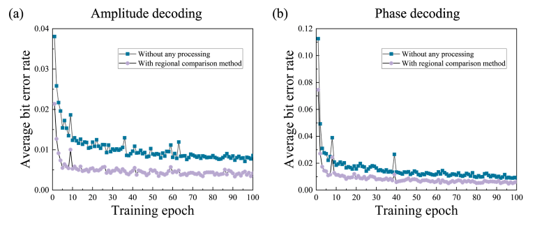 | 图6. 直接阈值法和区域比较法的解码结果比较 (a)振幅和 (b)相位 |