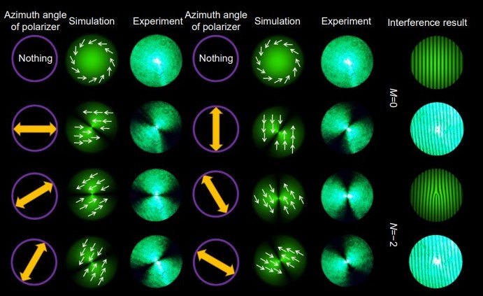 通过不同方向的偏振片的实验和模拟结果;右侧的结果是实验得到的