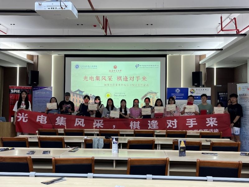 在国际光日与世界电信日双双来临之际,为促进同学间的知识交流,让同学们深入感受光电知识的魅力,5月17日,我院在科研楼18#306教室举办了光电与信息工程学院“光电集风采 棋逢对手来”光电知识棋盘赛活动。学院团委书记李雪芳老师、研究生兼职辅导员廖雨老师,以及学院各年级研究生、本科生选手参加了本次活动。 |