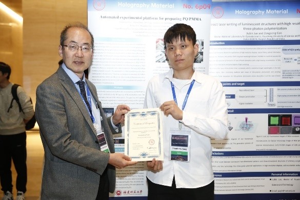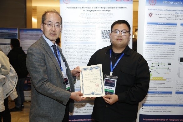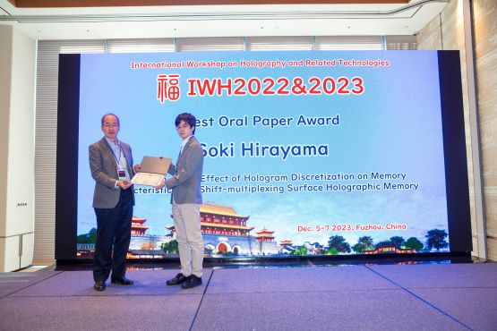 7日中午研讨会举行了隆重的颁奖仪式,根据委员会成员的投票结果,研讨会评出了大会主席奖、最佳论文奖、最佳口头报告奖、最佳张贴海报奖和最佳学生论文奖,我校信息光子学研究中心的硕士生徐静同学荣获最佳海报奖,硕士生何晨同学荣获最佳学生论文奖。本次会议主席东京大学 Tsutomu Shimura 教授在颁奖仪式上为获奖者颁发了奖状。最后本次研讨会组织委员会主席福建师范大学谭小地教授宣布IWH2022&2023圆满结束。