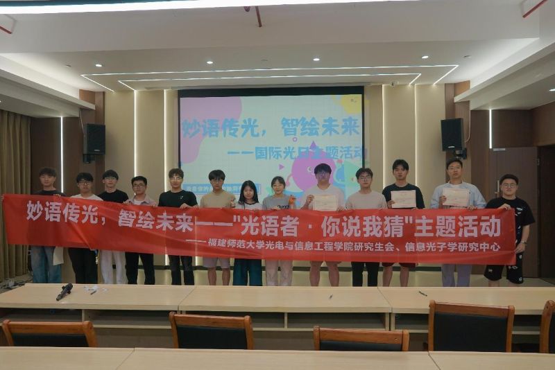 5月25日下午,在福建师范大学科研楼18号楼306教室举办了主题为“光语者·你说我猜” 挑战赛活动。该活动是为深入学习贯彻习近平总书记关于科技创新的重要论述,在第八届国际光日、第二十五个全国科技活动周、以及第九个全国科技工作日期间开展。由福建师范大学信息光子学研究中心、福建师范大学光电与信息工程学院和福建省光学学会等联合主办,由国际光学工程学会(SPIE)福建师范大学学生分会、美国光学学会(Optica)福建师范大学学生分会、中国光学学会(COS)福建师范大学学生分会、中国光学工程学会(CSOE)福建师范大学学生分会承办。也是第八届“国际光日”系列活动的最后一场活动。活动对象涵盖全体对光学有兴趣的爱好者、在校本科生、研究生等。活动通过趣味竞赛形式,将光电专业知识融入团队游戏,激发参与者对光电技术的探索热情。 活动开始前,首先由主持人详细介绍国际光日设立的初衷与重要意义并强调了本次国际光日主题校内赛事活动对于推动校园科学文化建设、激发师生科研兴趣的积极作用。本次国际光日校内赛事活动正式拉开了精彩序幕。 |